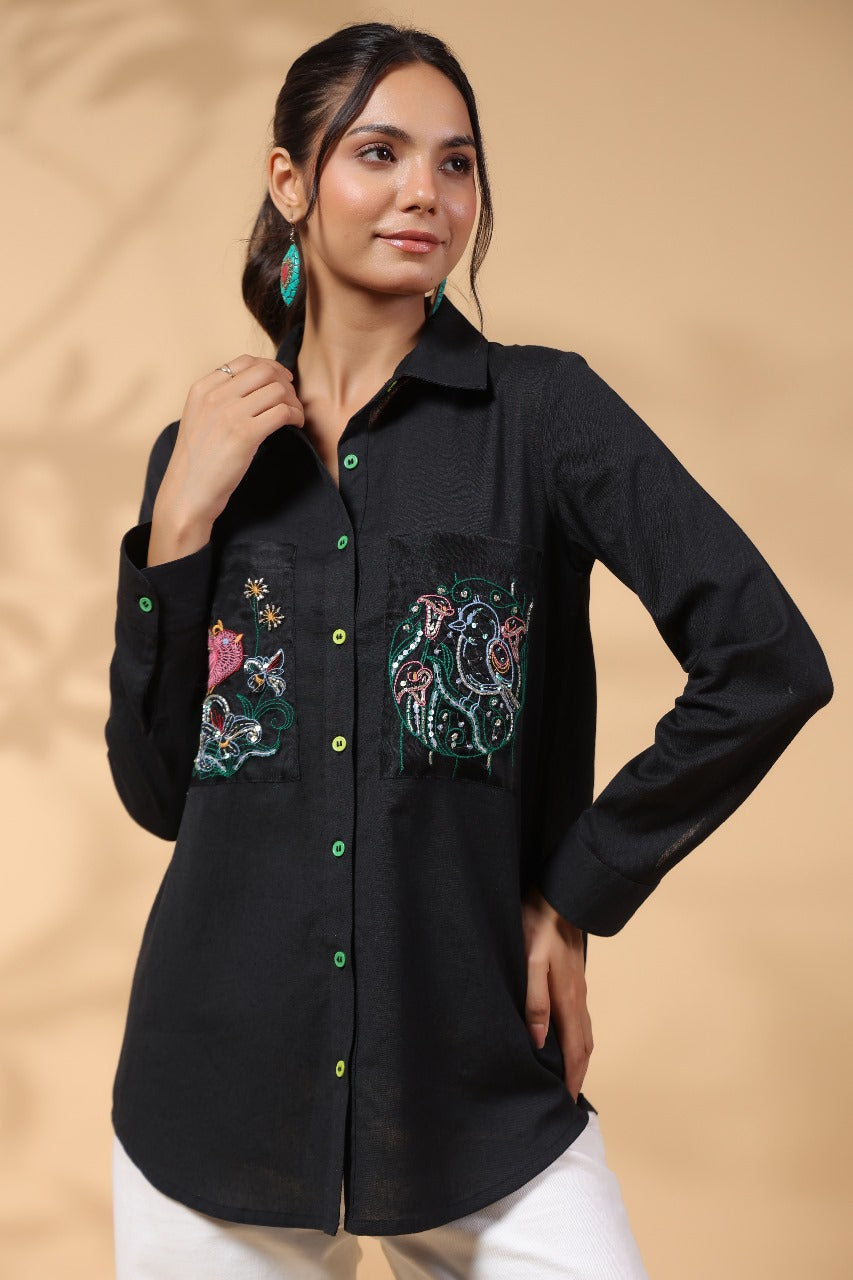 The Black Polka Edit shirt combines classic black fabric with a timeless polka dot pattern, crafted for a refined yet versatile look. Designed for durability, it requires gentle handwashing or dry cleaning to maintain its quality and appearance. Ideal for those seeking sophistication with easy care, this shirt offers a polished finish suitable for both professional and casual settings.