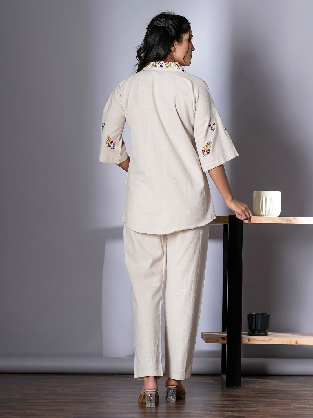 KHADI EDIT in offwhite cotton offers a versatile and comfortable choice for casual, daily, office, or fusion wear. Crafted from breathable khadi fabric, it ensures natural comfort and style throughout the day. Designed for a regular fit, this piece balances traditional craftsmanship with contemporary appeal. The dry clean recommendation helps maintain its texture and color longevity, making it a refined addition to your wardrobe.