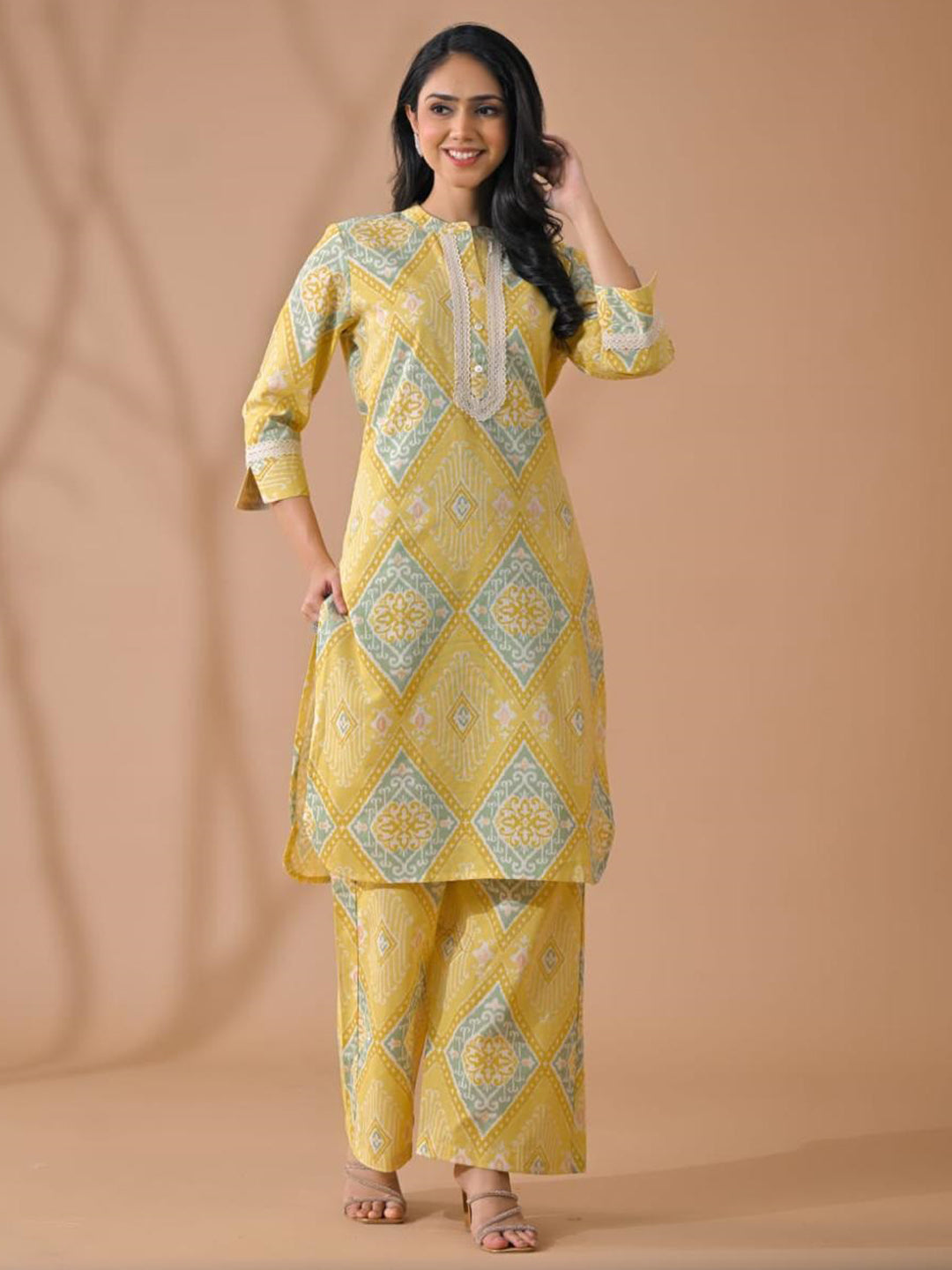 The Yellow Diamond Edit combines vibrant yellow cotton fabric with expert craftsmanship, designed for everyday wear. Its breathable material ensures comfort throughout your daily routines, while recommended gentle handwash or dry cleaning maintains its quality and color vibrancy. Ideal for office or casual settings, this piece offers durability and style tailored for consistent use.